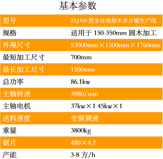 ZQ350型全自動原木多片鋸生產線是一種用于原木的開破以及分片的高性能專用機械