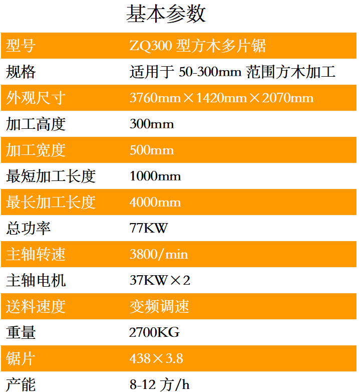 1.ZQ300方木多片鋸采用獨立5條滾軸傳動設計,可以保證同一個平面線上,送料平穩。